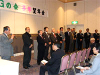 2008年 望年会 場所 アークホテルロイヤル 16時30分開会 1、内田壮平筆頭副会長の開会の挨拶っで始まる。 2、事業推進部より本日のアクロスでの「会員交流展示会」の紹介が冨安 森久理事より紹介された。 3、組織拡大部の草野理事より12月度の会員増強について会員一社一名の紹介をお願いする。