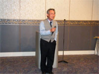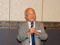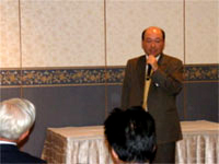 望年会の挨拶は会の重鎮,顧問の諸岡先生の挨拶で始まった。 年間、140回の日本中の講演に走り回るスーパーマンである。アサヒビールの猛烈社員で鳴らし営業の生き神様と呼ばれる由縁である。