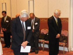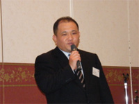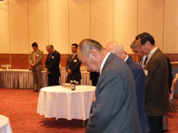 定例会終了後、特に親密だった福岡事務局長の司会で黙祷をささげ、永利新一会長の挨拶の後、江崎繁一代表理事が挨拶しました。