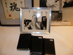 正面左サイドには元気な諸岡先生のご遺影と共に、ご活躍のファイル、手帳などが飾られた。