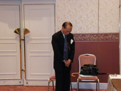 なごり尽きない「偲ぶ会も」やがて時が去り、諸岡智明さんの最後の感謝のご挨拶の後、臼木副会長のおわかれの挨拶で幕となりました。 |