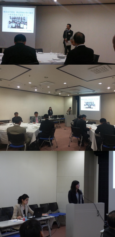 博多女子高校で2011年よりスタートし、今年で5年目を迎える『女子高生による商品開発の取り組み』をご紹介いただきました。Hakata Girl's Shopという模擬会社のもと、食品から美容製品、企業とのコラボ商品など本格的に商品開発を行っています。高校時代から社会と接し、卒業後の進路選択へ生かすことはもちろん、自立した女性を育成する博多女子高校の教育方針に非常に感銘を受けました。