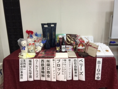 望年会のお楽しみイベント「ビンゴゲーム」 今年も多くの会員様に沢山のご協賛を頂きました。 賞品をご提供していただいた会員企業様、ありがとうございました。
